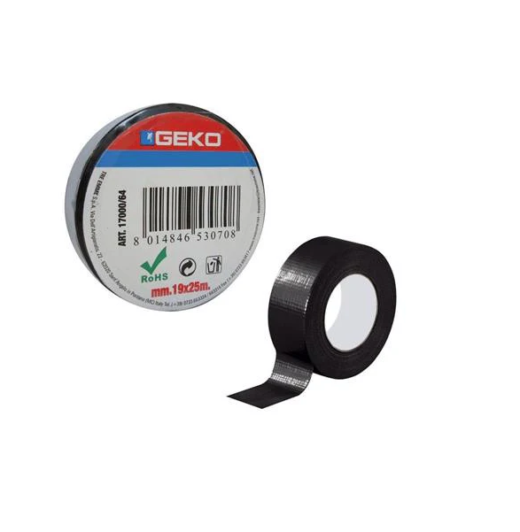 Nastro in PVC plastificato per l´isolamento elettrico primario fino a 600 V. Larghezza 19 mm. Lunghezza 25 metri.