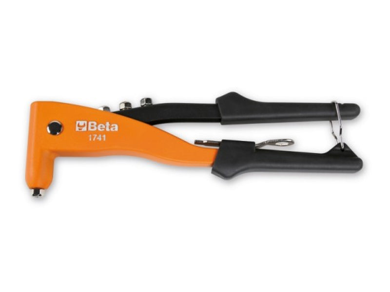 Rivettatrice manuale professionale Beta 1741 per rivetti a strappo standard in alluminio, acciaio e acciaio inox con diametri da 2,4 a 5 mm. Ideale per ogni ambito professionale che richiede un ridotto numero di rivetti per volta.